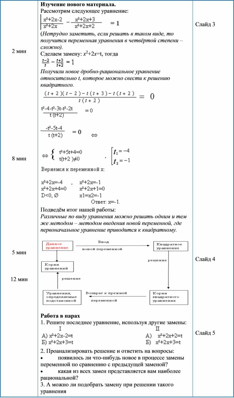 2. Проанализировать решение и ответить на вопросы: · появилось ли что-нибудь новое в процессе замены переменной по сравнению с предыдущей заменой? · какая из всех замен представляется вам наиболее рациональной? 3. А можно ли подобрать замену при решении такого уравнения