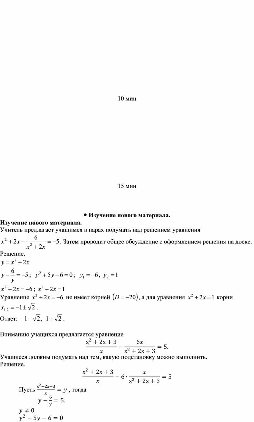 Дескрипторы - применяет метод введения новой переменной; - знает и применяет алгоритм решения дробных рациональных уравнений; - решает полученное квадратное уравнение; - находит корни уравнений. |
