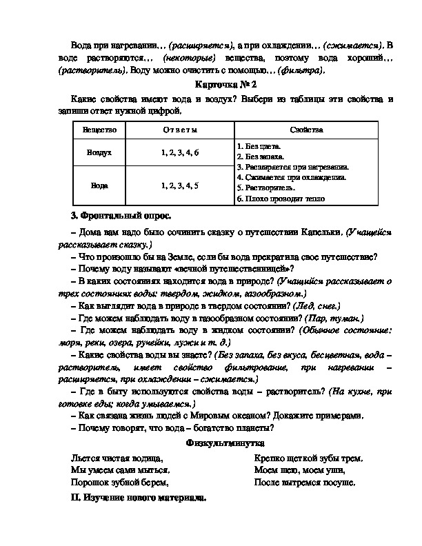 Какие свойства имеют вода и воздух? Выбери из таблицы эти свойства и