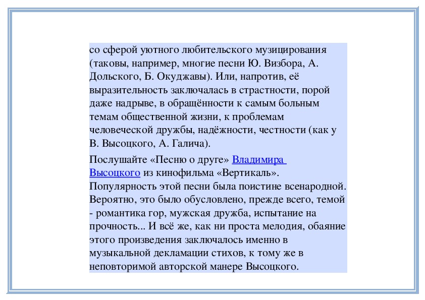 авторской песни В. Высоцкий, Б. Окуджава, А.