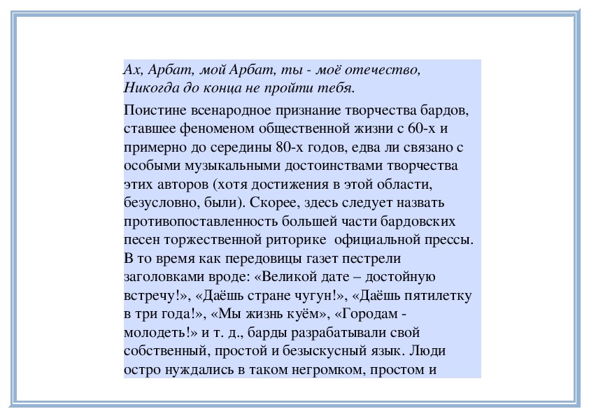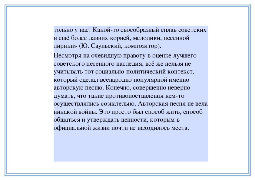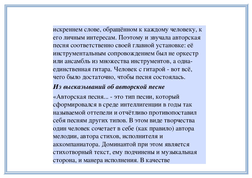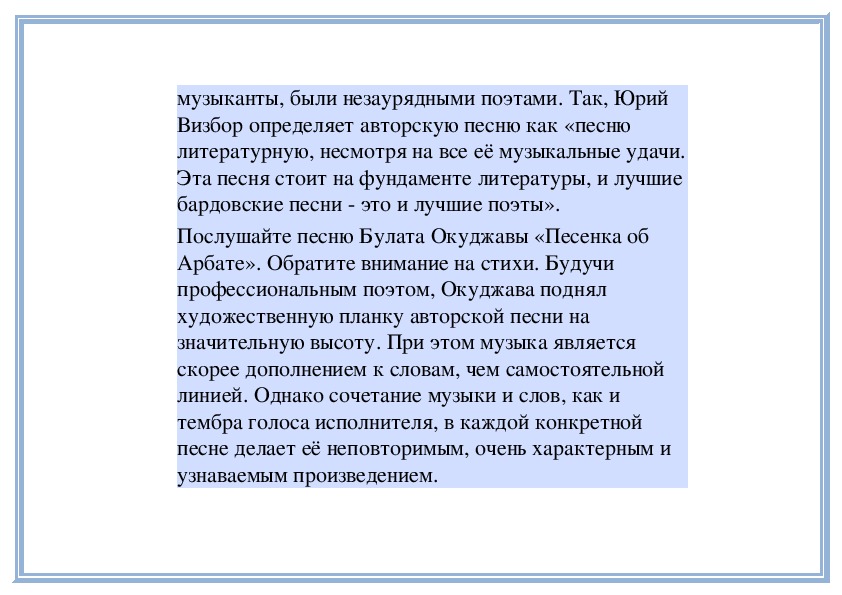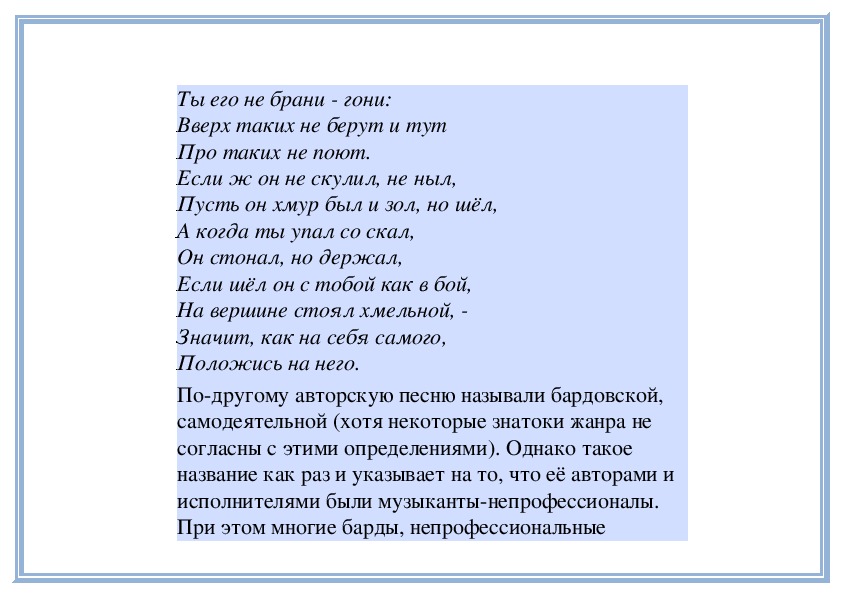 При этом многие барды, непрофессиональныемузыканты, были незаурядными поэтами. Так, Юрий