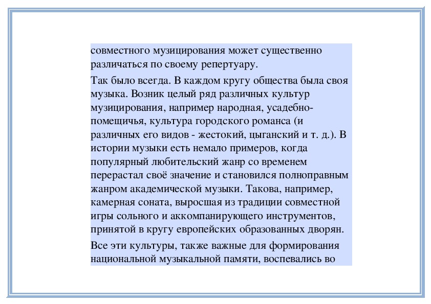 наше время также возникло множество видов музыки(включая и те, о которых шла речь в предыдущем