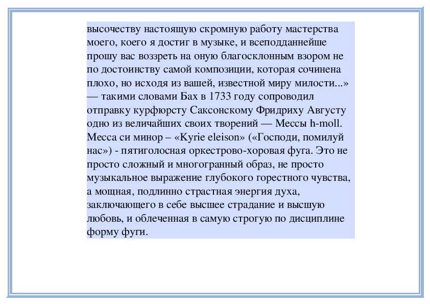 форму фуги.Вслушайтесь в звучание хора «Kyrie eleison» и,