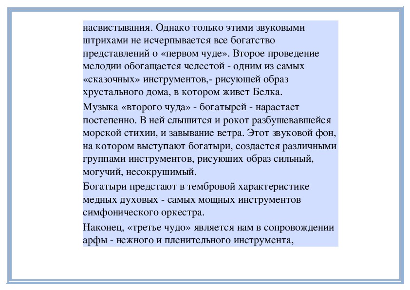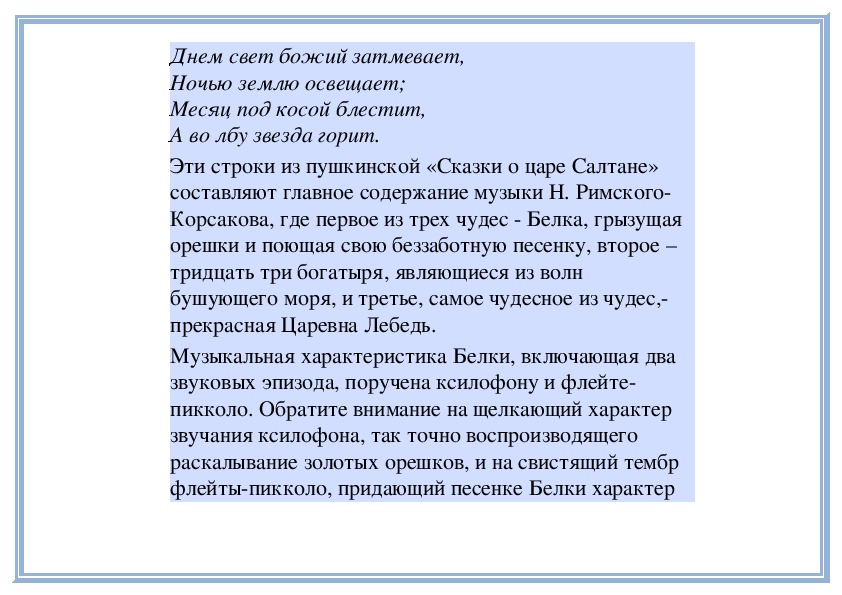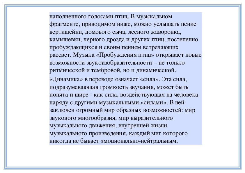 передаются разнообразные звучания летнего леса,наполненного голосами птиц. В музыкальном