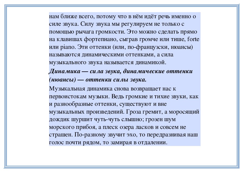 тихим. На движение динамики оказывают влияние нетолько естественные законы распределения громкости,