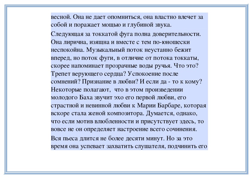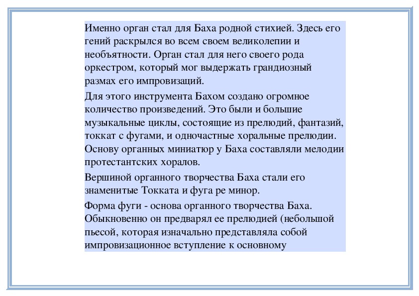 своеобразие немецкой органной музыки.Именно орган стал для Баха родной стихией. Здесь его