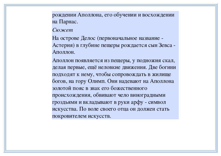 искусство пантомимы. Они рассказывают орождении Аполлона, его обучении и восхождении