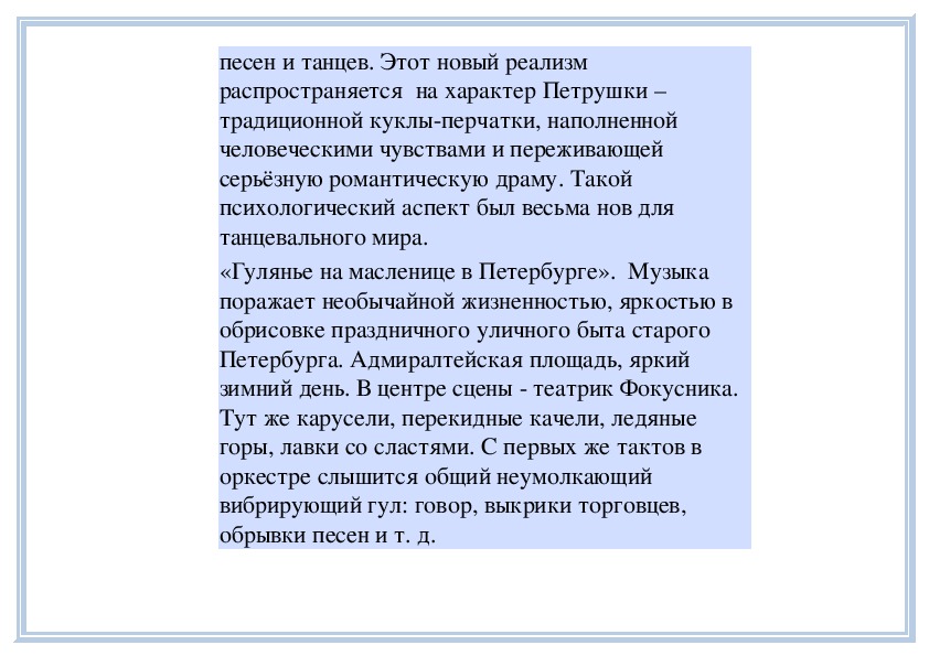 самобытности и пронизана цитатами из русскихпесен и танцев. Этот новый реализм