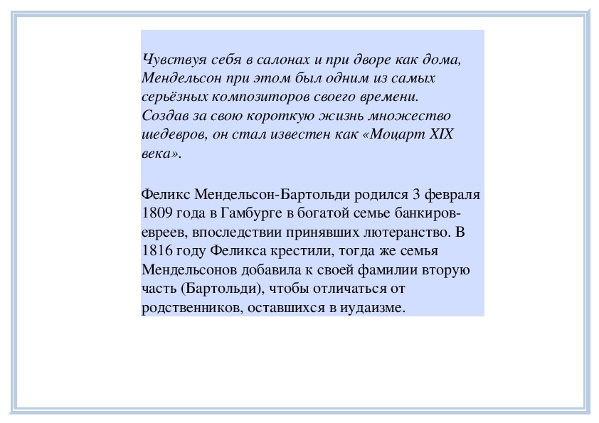 Феликс Мендельсон. Гармония и равновесиеЧувствуя себя в салонах и при дворе как дома,
