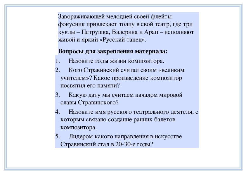 Стравинский стал в 2030е годы?6. Когда Стравинский в последний раз посетил