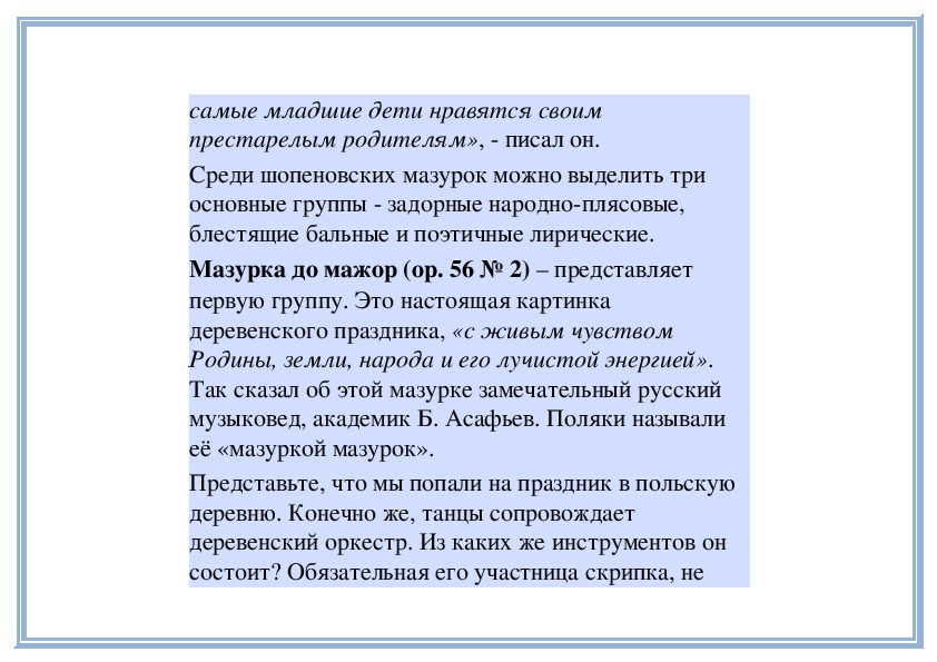 в том числе и музыкальное. Музыка все большезаполняла его жизнь. Он стал петь в хоре училища