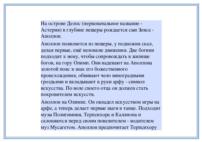 муз Мусагетом. Аполлон предпочитает Терпсихорудвум другим музам. Все прославляют великую силу