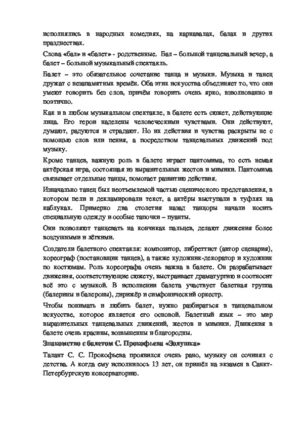 Знакомство с жанром балета (на примере балета С. Прокофьева