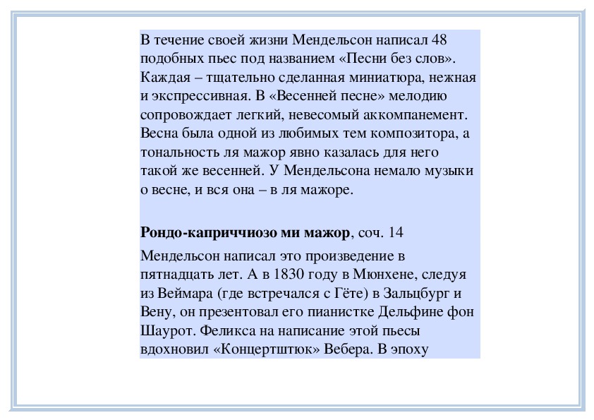 характернейшие черты творчества Мендельсона
