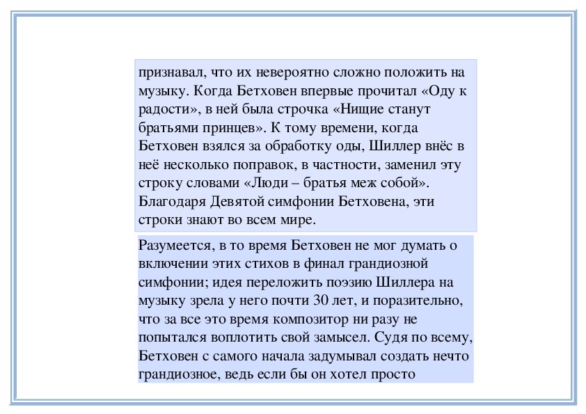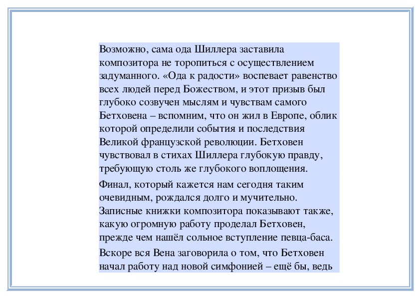 музыку. Когда Бетховен впервые прочитал «Оду к