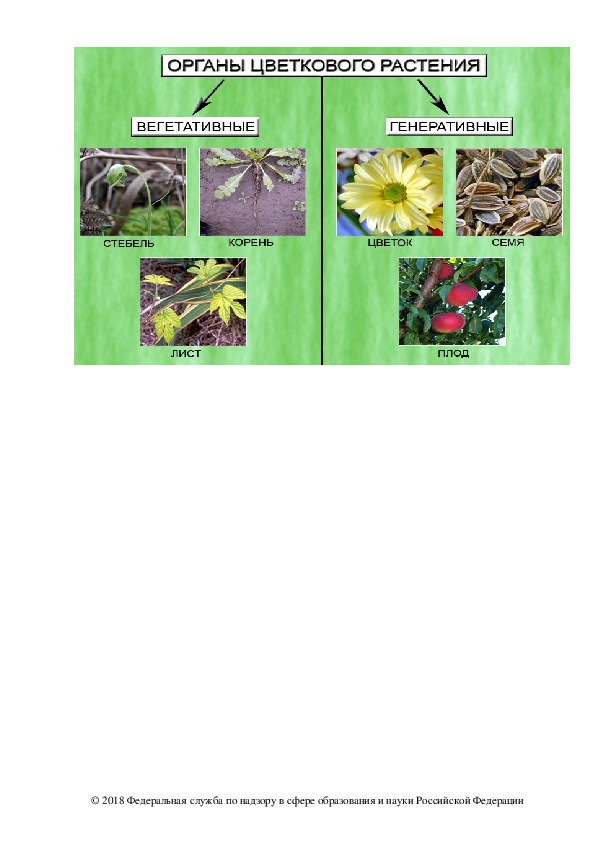 голосеменных (цветок, плод). Различать органы цветковых растений (вегетативные и генеративные)