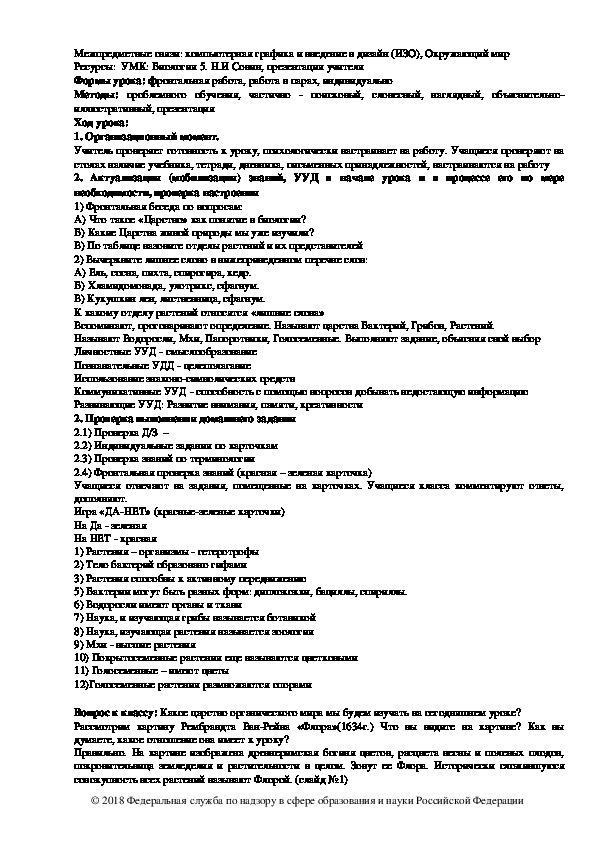 © 2018 Федеральная служба по надзору в сфере образования и науки Российской ФедерацииМежпредметные связи: компьютерная графика и введение в дизайн (ИЗО), Окружающий мир