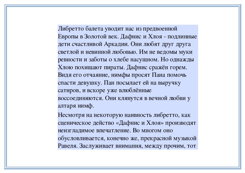 звучит музыка из «Дафниса и Хлои», и «Семейка