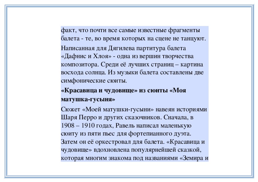 будущих исполнителей произведения Равеля». Так