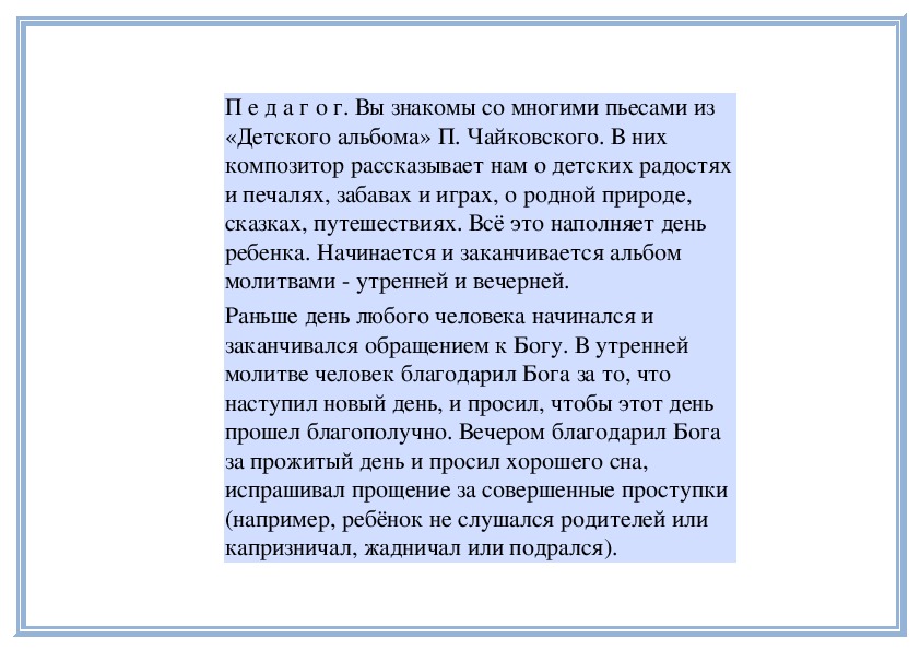 П е д а г о г. Вы слушали на прошлом занятии две