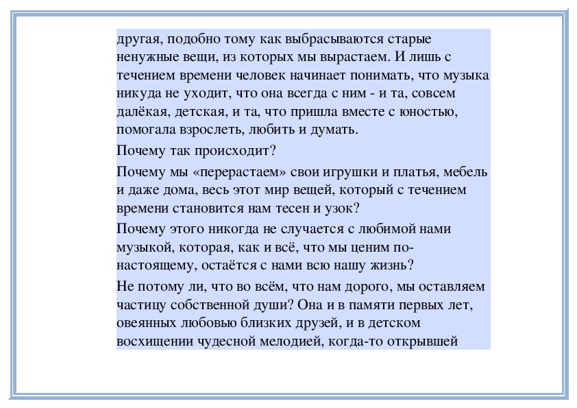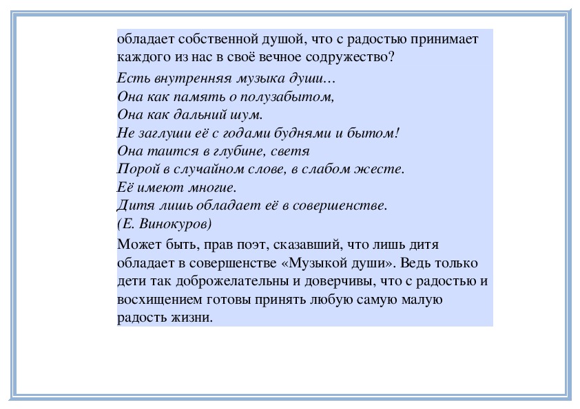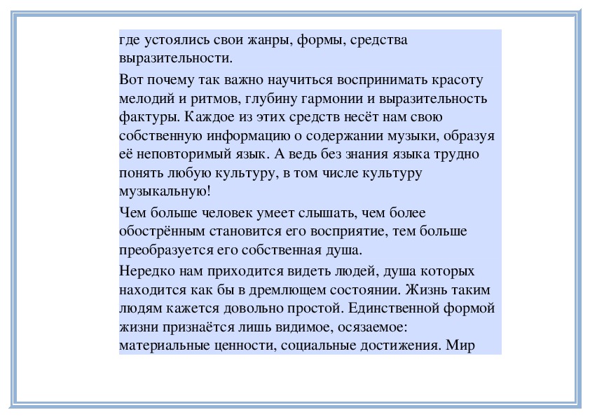 (ведь мало слушать, нужно слышать!), но и воспитание