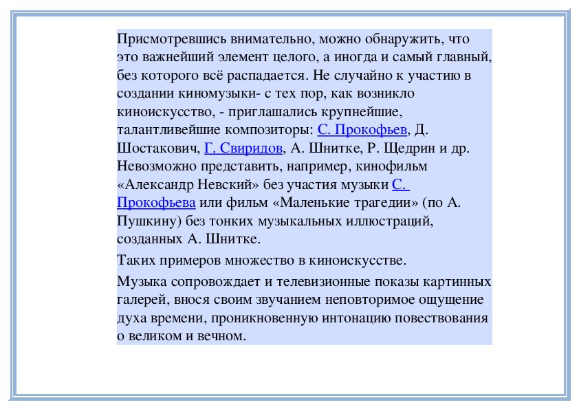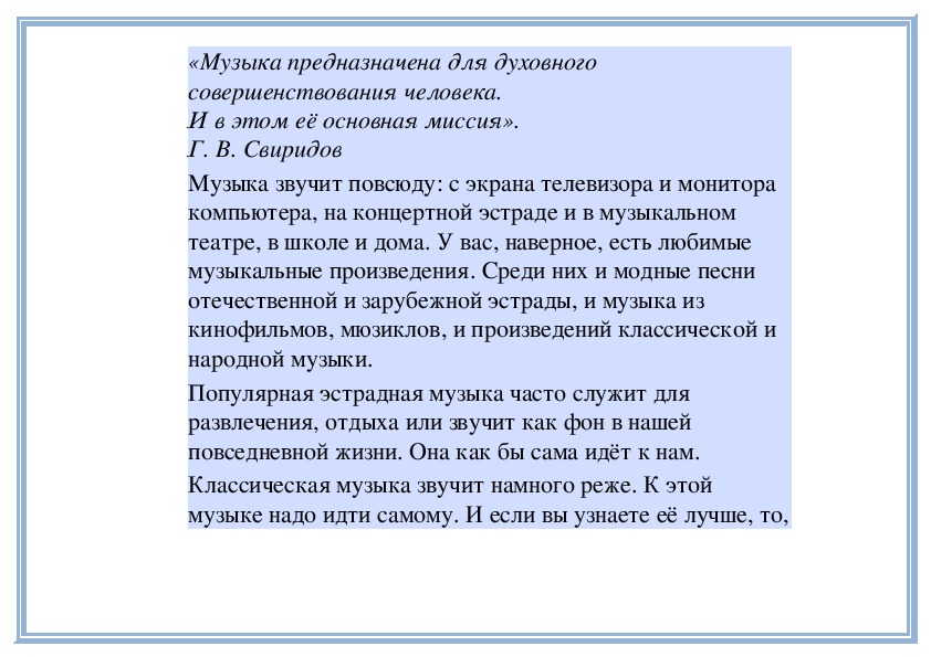 (Б. Пастернак), и вхождение в музыкальную традицию,где устоялись свои жанры, формы, средства