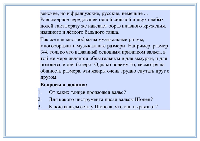 Какие вальсы есть у Шопена, что они выражают?Мазурка