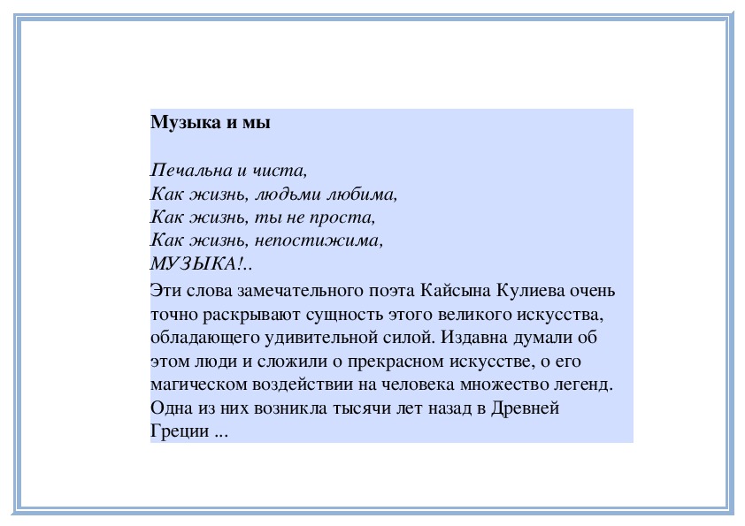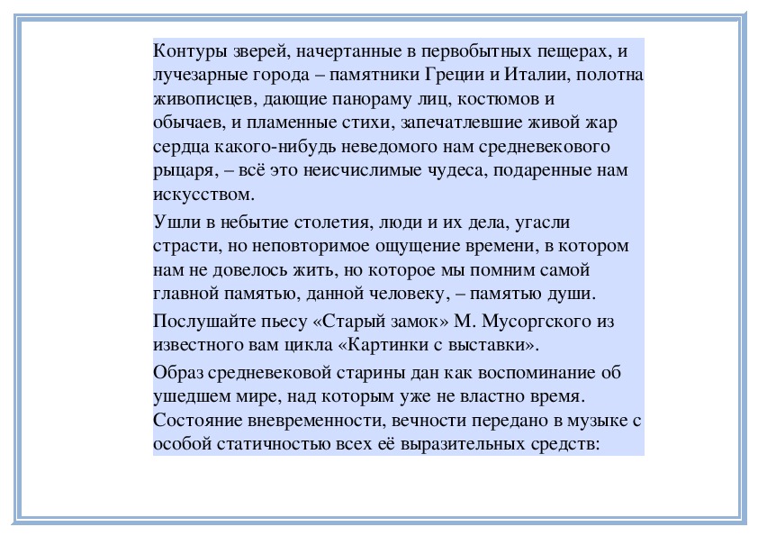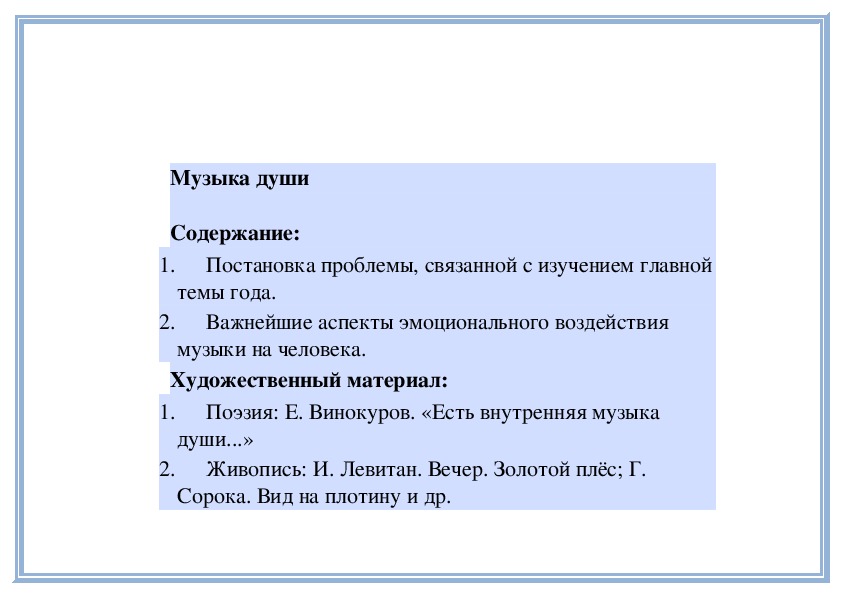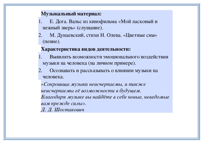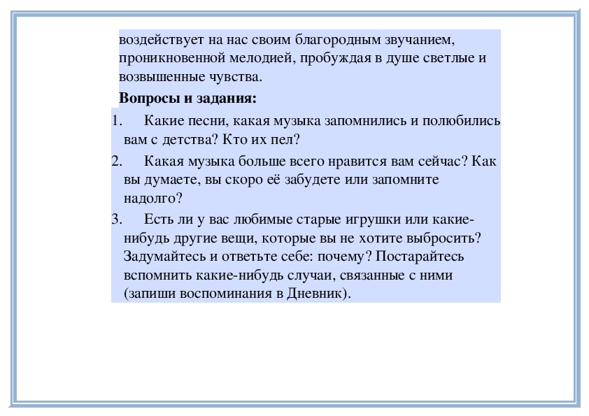 1. Оценивать музыкальные произведения с позиции красоты и правды.