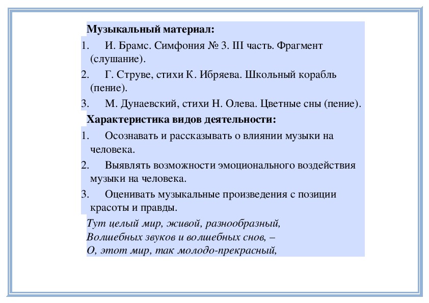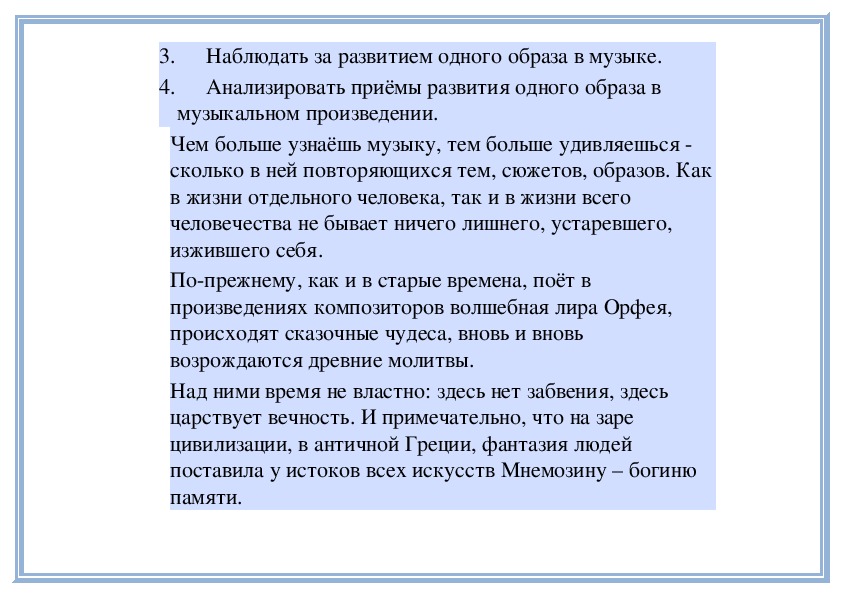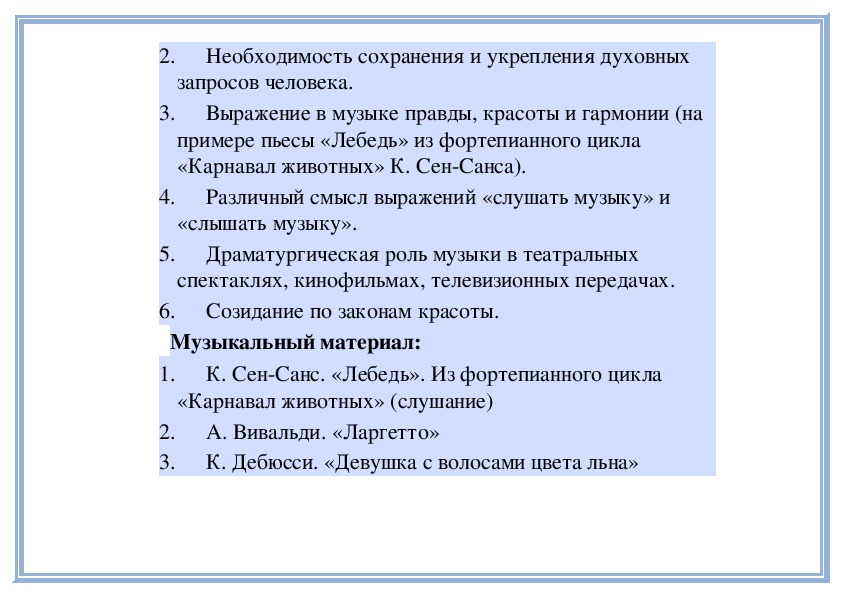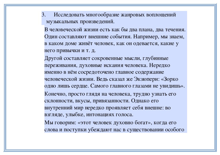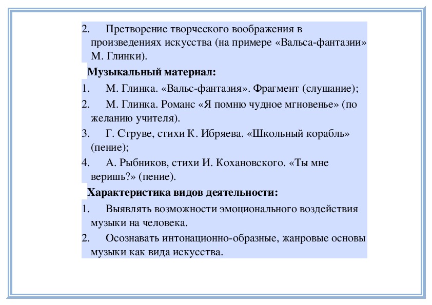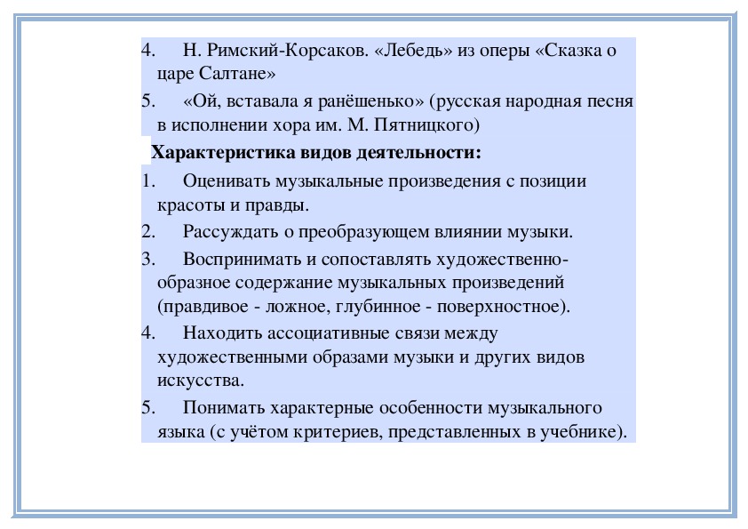 3. Воспринимать и сопоставлять художественно-образное содержание музыкальных произведений (правдивое - ложное, глубинное - поверхностное).