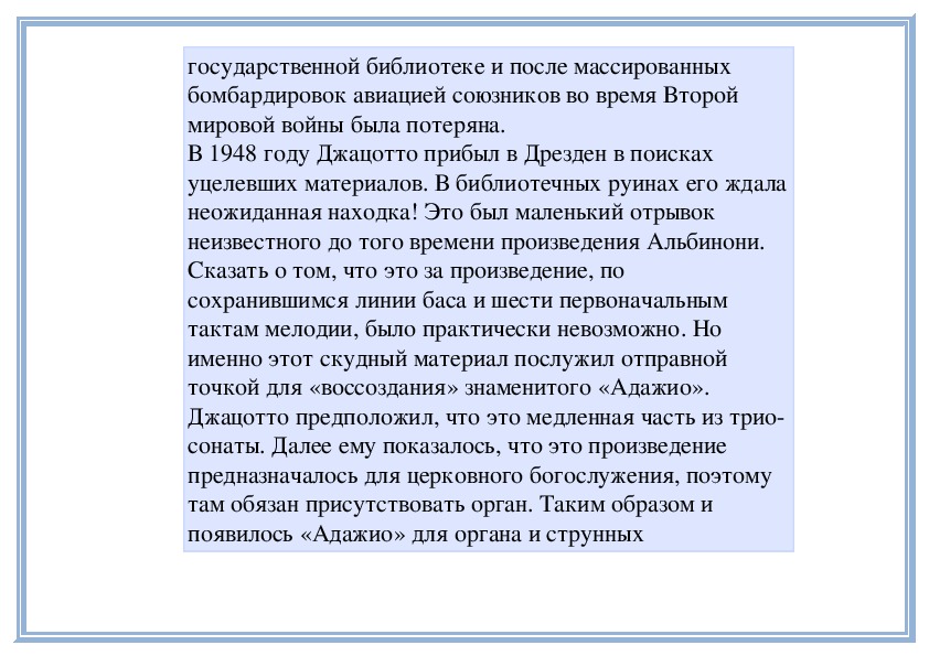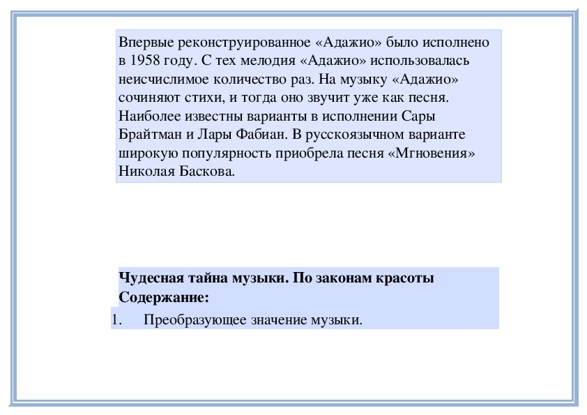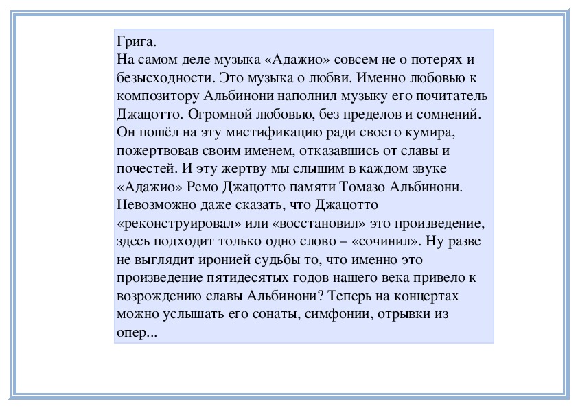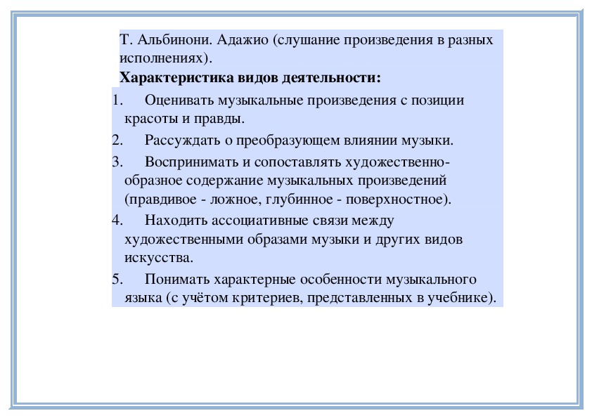 5. Выражение глубины и благородства художественного образа в Адажио Т. Альбинони.