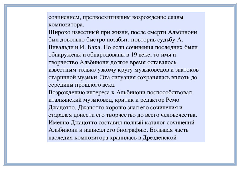 Т. Альбинони. Адажио (слушание произведения в разных исполнениях).