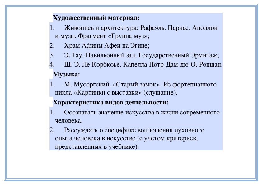 4. Находить ассоциативные связи между художественными образами музыки и других видов искусства.