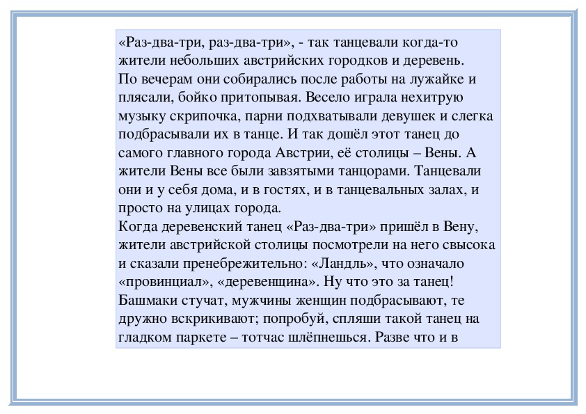 вальса? Прежде всего, в его музыкальном размере 3/4. В