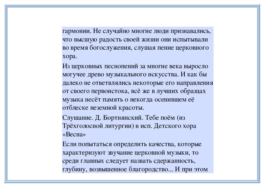 Слушание. Д. Бортнянский. Тебе поём (из