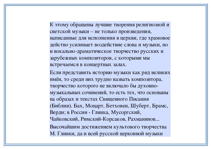 1. Понимать значение духовной музыки в