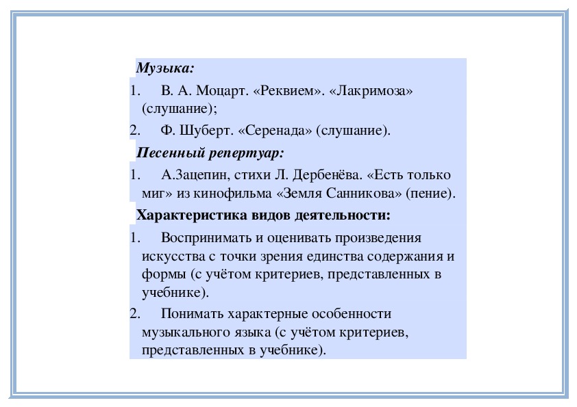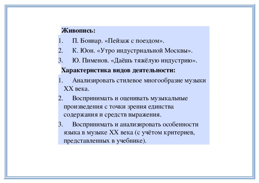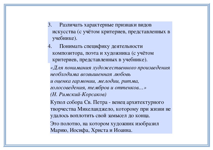 3. Оценивать музыкальные произведения с позиции красоты и правды.