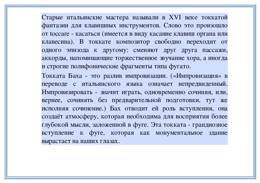 1. И. С. Бах. Токката и фуга ре минор для органа (слушание);