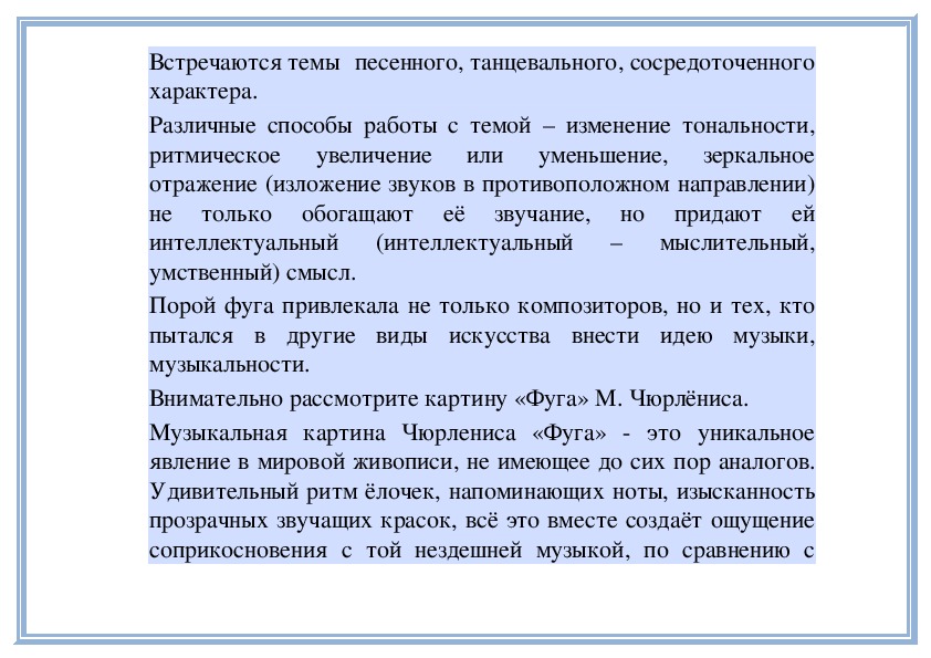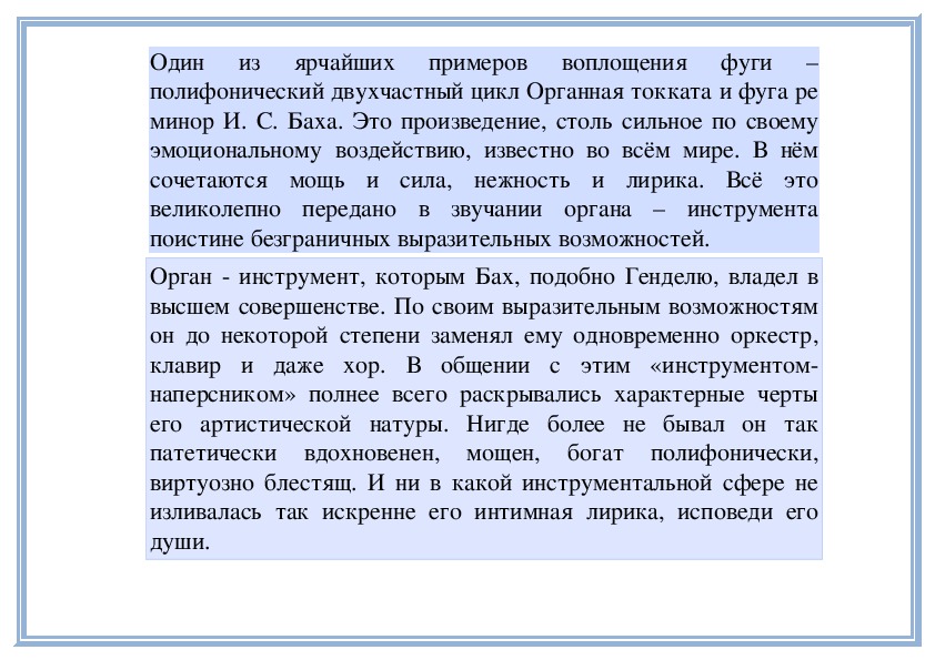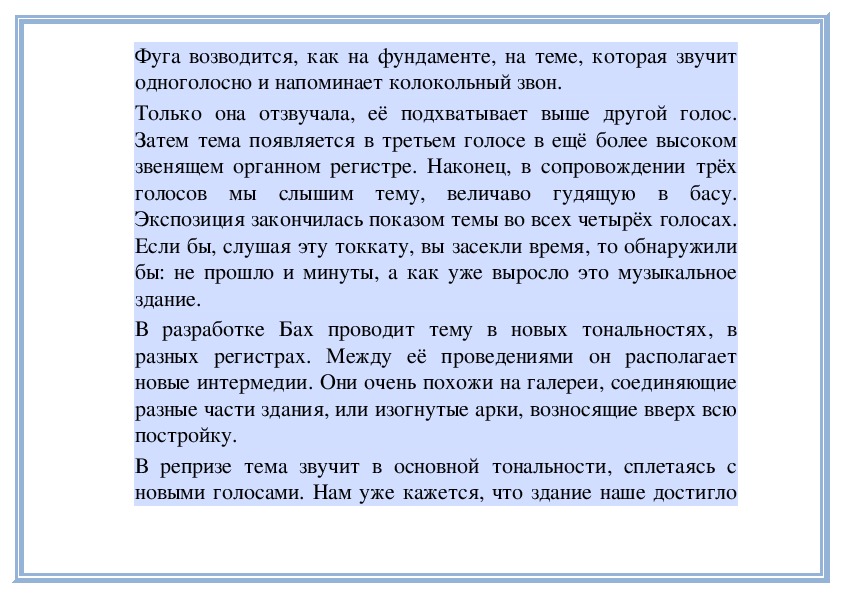 уравновешенность, стройность и строгость. Так, фуга пишется