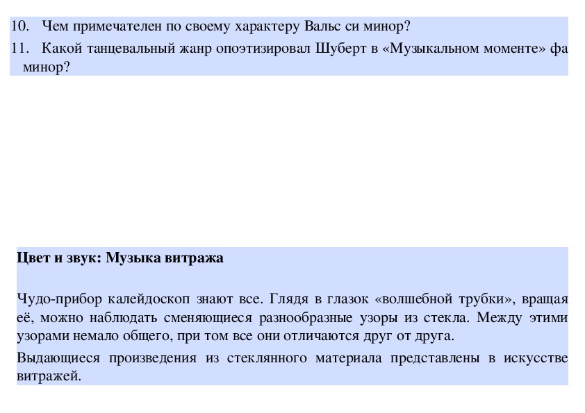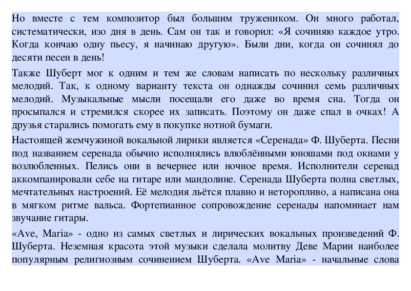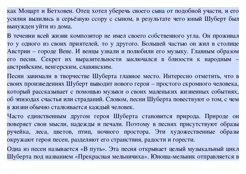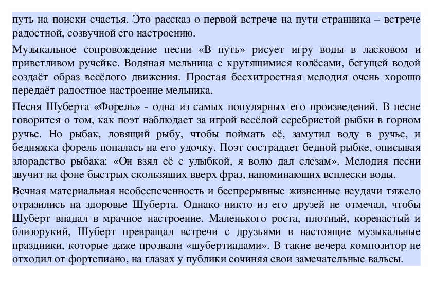 об эпизодах счастья или страданий. Словом, песни Шуберта повествуют о том, с чем