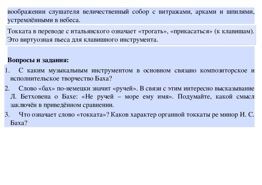 3. Что означает слово «токката»? Каков характер органной токкаты ре минор И. С.
