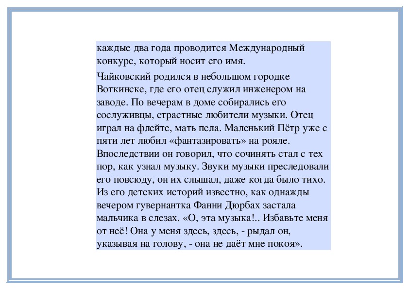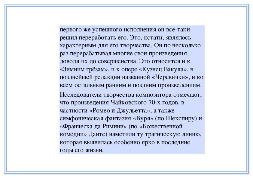 произведениях композитора...Характерной чертой творчества Чайковского в