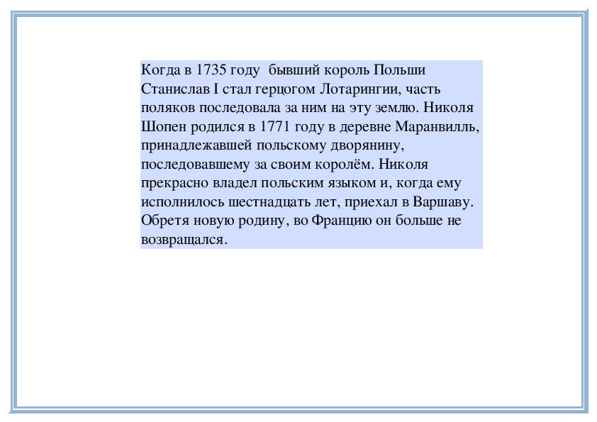Замойским (1959 г.)В 1802 году Николя Шопен