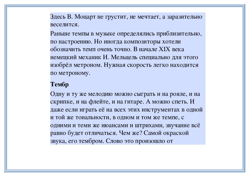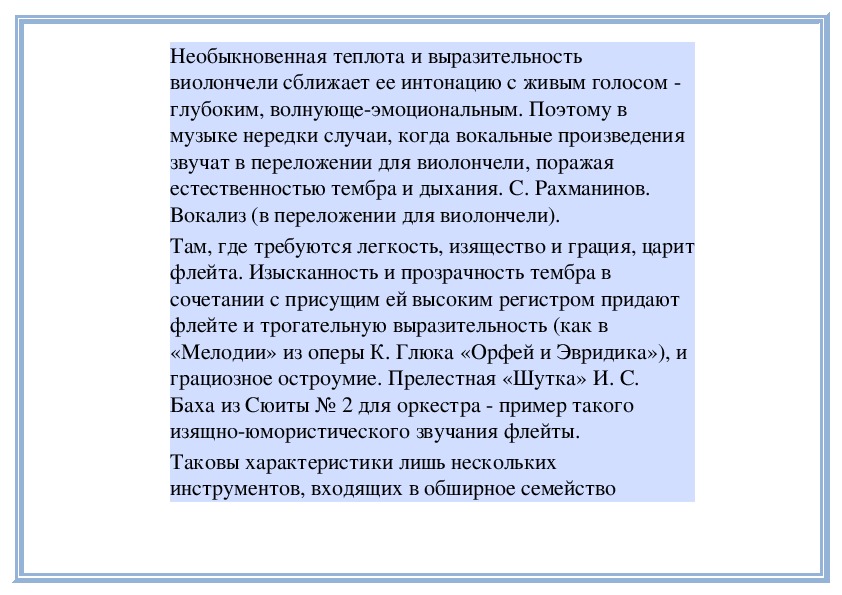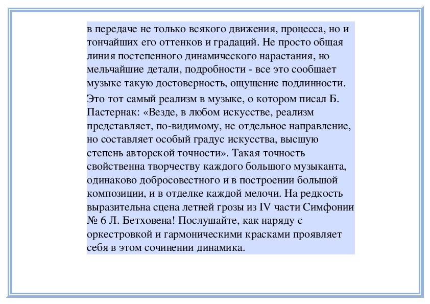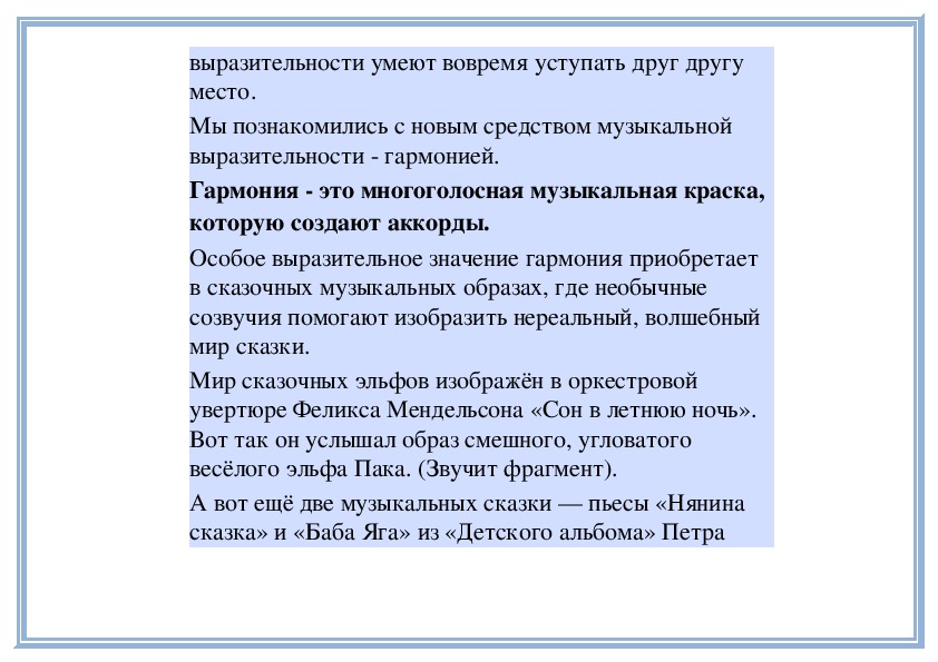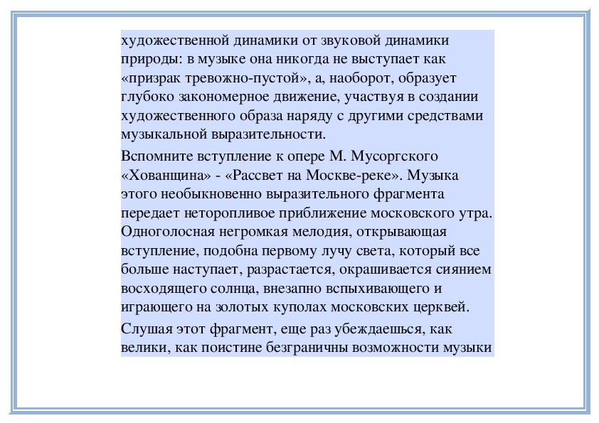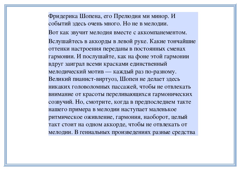 мелодии. В гениальных произведениях разные средствавыразительности умеют вовремя уступать друг другу