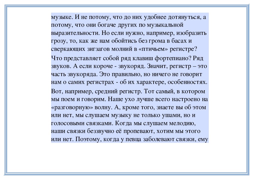 или нет. Поэтому, когда у певца заболевают связки, емуне разрешают не только петь самому, но и слушать