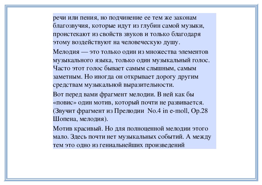 (Звучит фрагмент из Прелюдии No.4 in emoll, Op.28