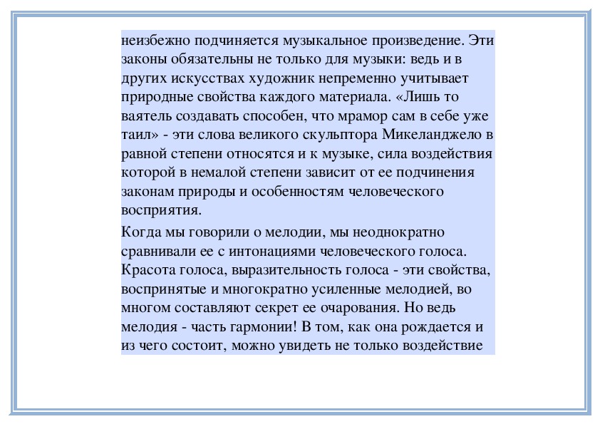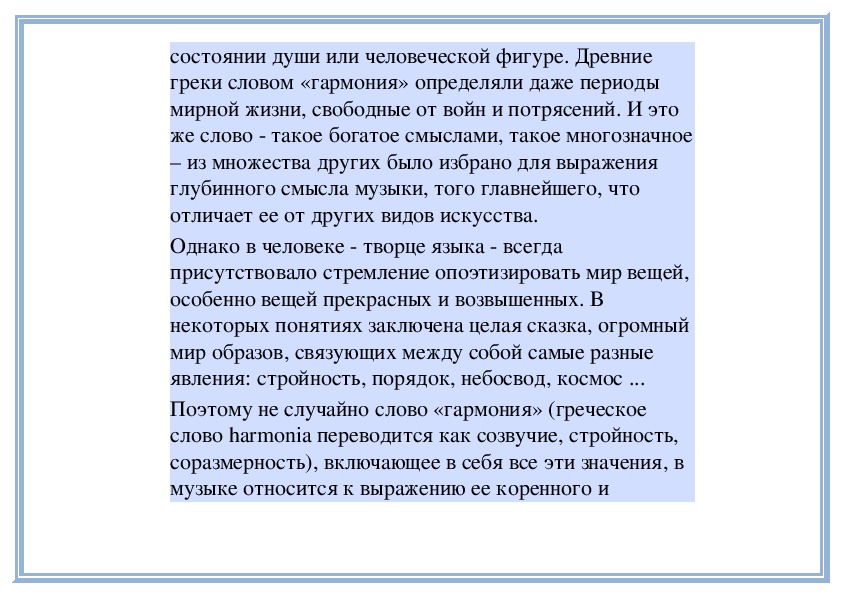 гармонии – естественным природным законам, которымнеизбежно подчиняется музыкальное произведение. Эти