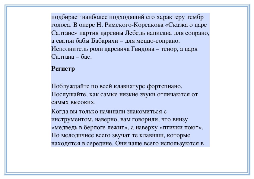 голоса. В опере Н. РимскогоКорсакова «Сказка о царе