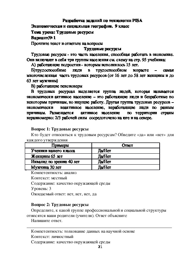 Урок географии с применением заданий PISA.