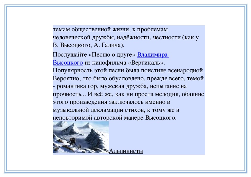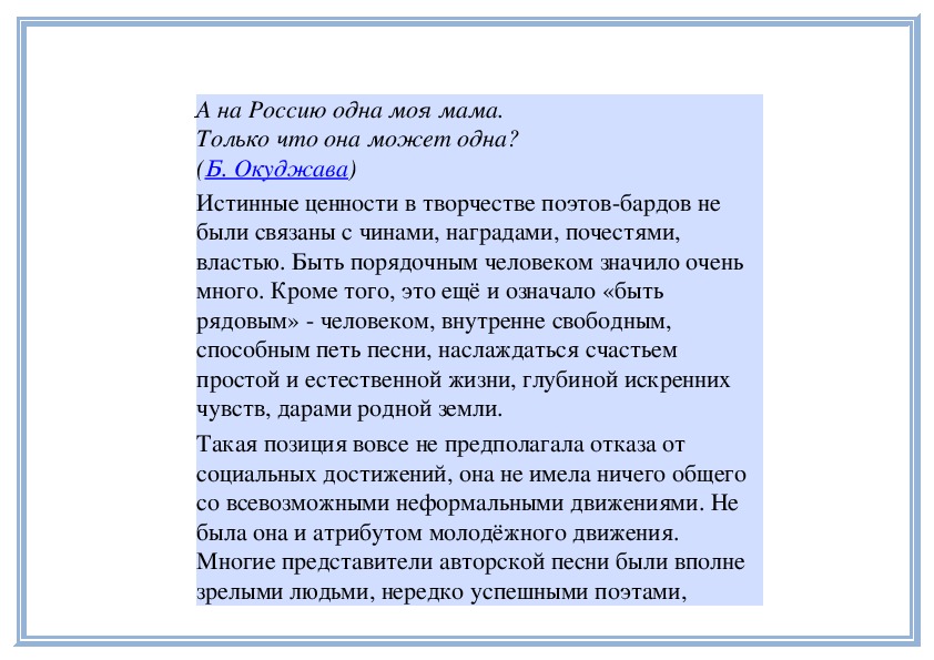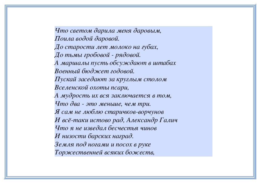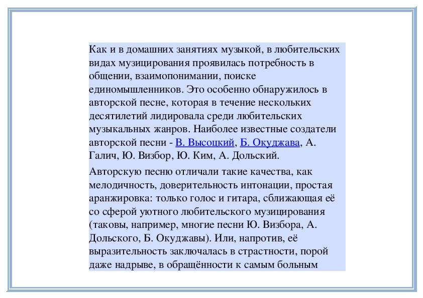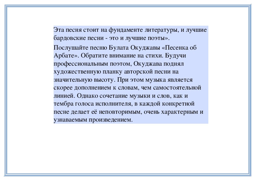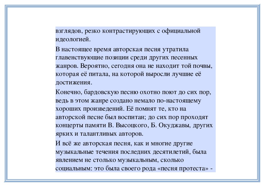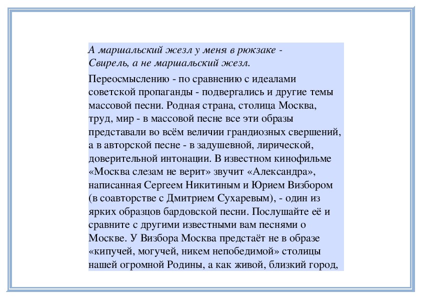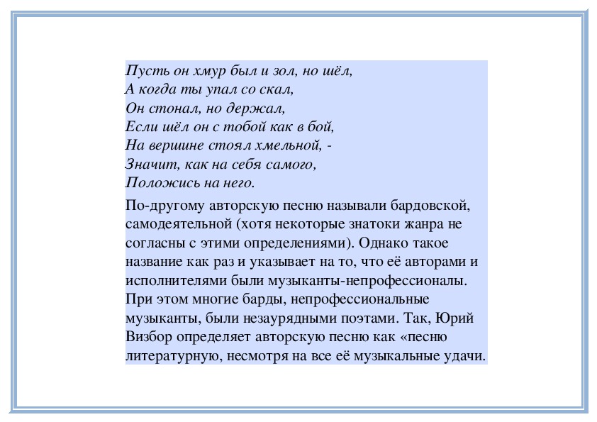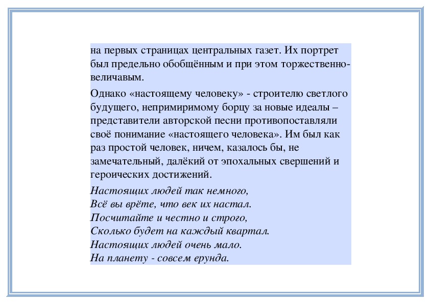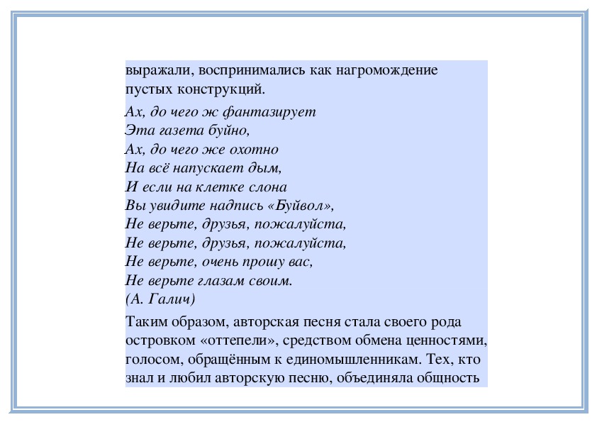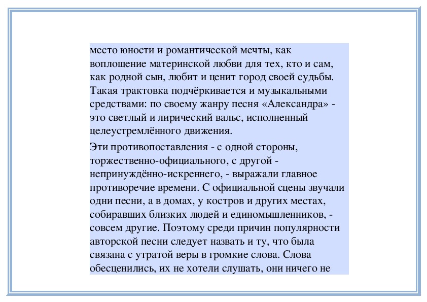 зрелыми людьми, нередко успешными поэтами,физиками, драматургами. Эта песня в значительной