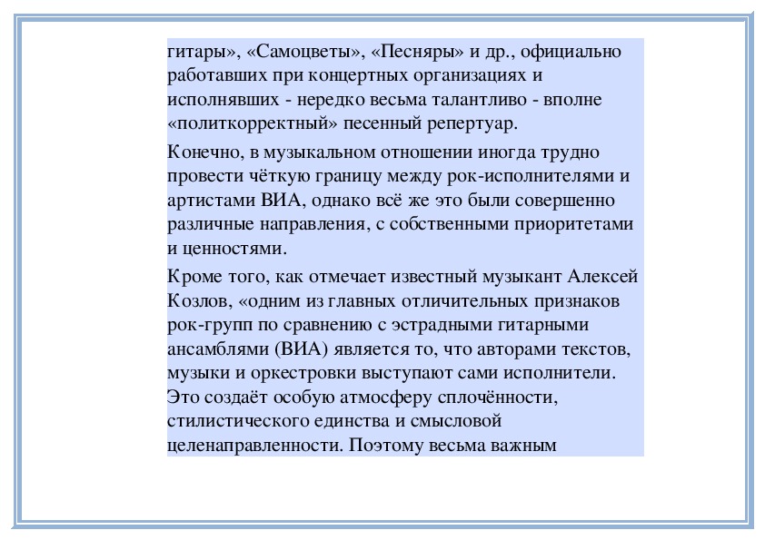 ансамблей (ВИА), таких как, например, «Поющиегитары», «Самоцветы», «Песняры» и др., официально